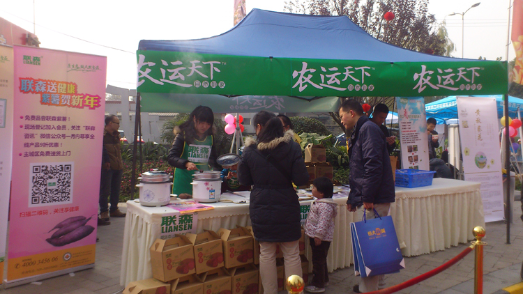 12月27至28日,联森紫薯品牌促销活动首站在温江恒大新城社区拉开序幕。此次促销活动主要通过社区群众免费品尝紫薯系列产品、会员9折等优惠活动,使社区居民能够亲身体验我公司产品的优良品质、美味口感及丰富的营养价值。让广大人民群众实质性地享受到我公司的迎新钜惠活动。